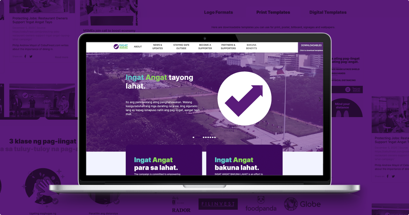 The Ingat Angat campaign is a private sector-led campaign that aims to re-start the Philippine economy during the pandemic. Web design and development for the Ingat Angat Website were done by the NW Experience Design and Web Development teams, which allowed users to learn more about the campaign and encouraged them to participate through an interactive logo generator.